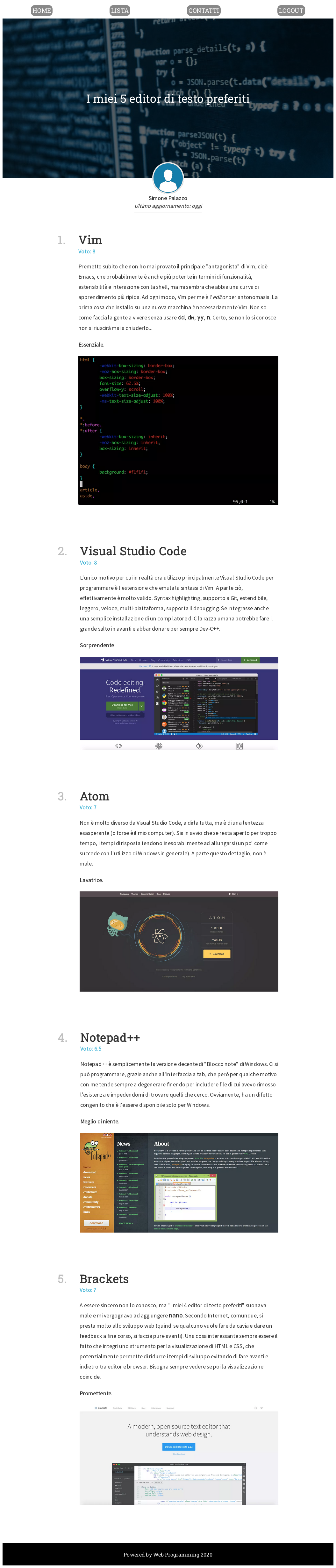 - un footer che contiene informazioni sulla pagina (tra cui nome, cognome, matricola).